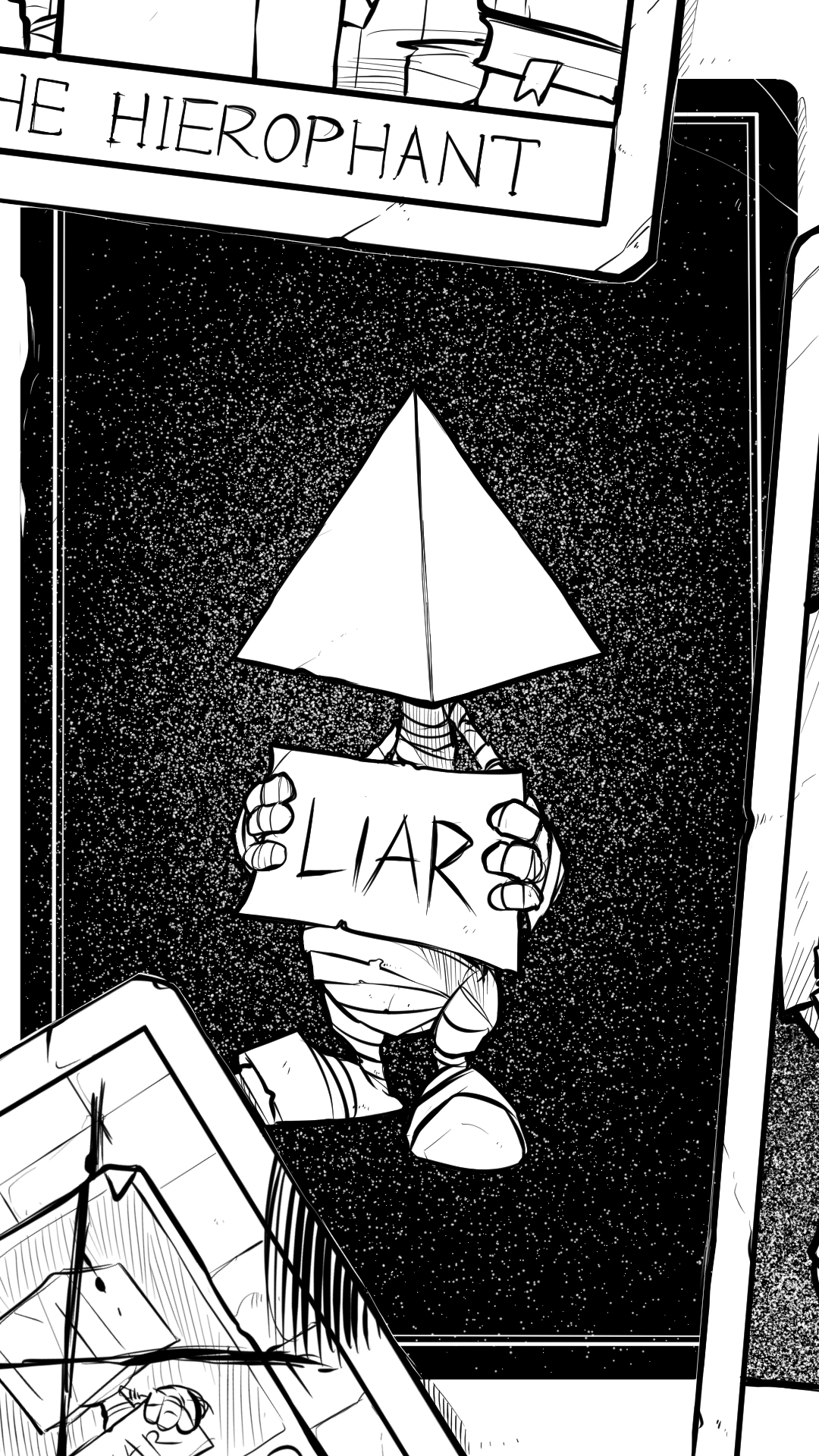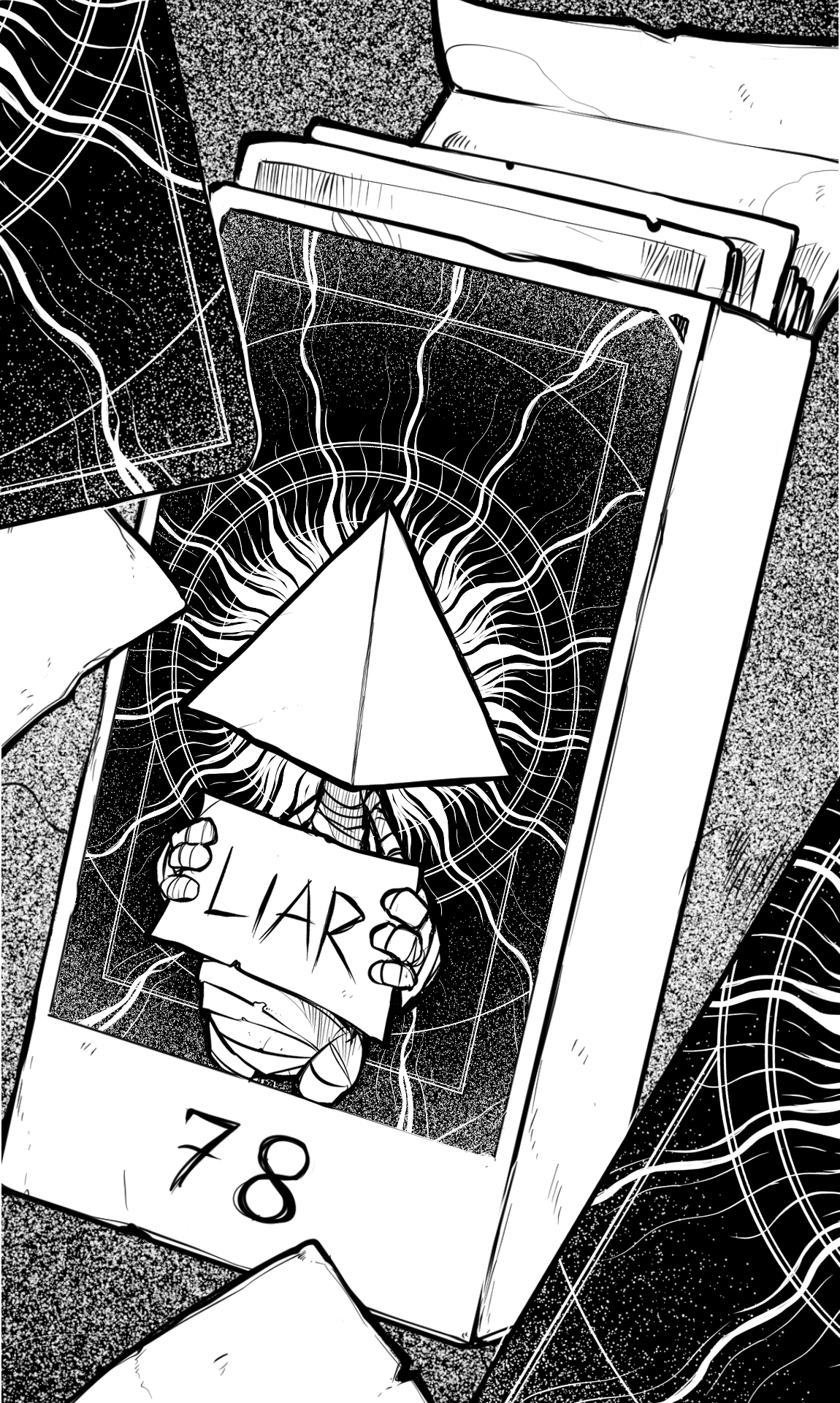 as I was doing a daily drawing challenge for my Instagram page. I ended up recalling the story of my OC Liar. I always had a fascination for tarot cards and I always failed to create my own deck.. one thing carried the other and I made one for Liar